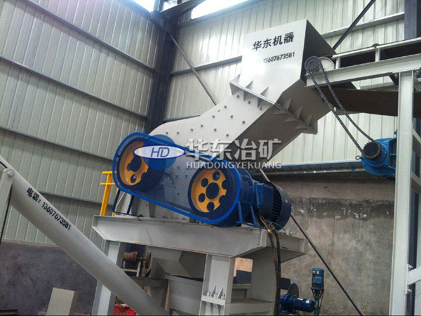 本機主要由上料機,進料口,刀盤,錘板,傳動軸,皮帶輪,襯板,篩網,出料口,磁選分離機等部件組成。
